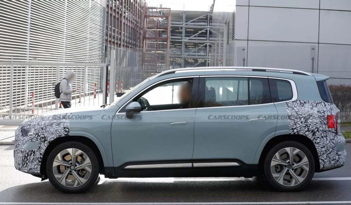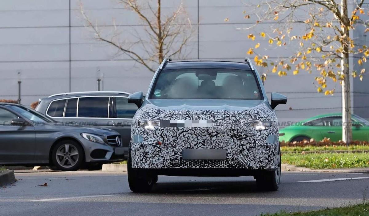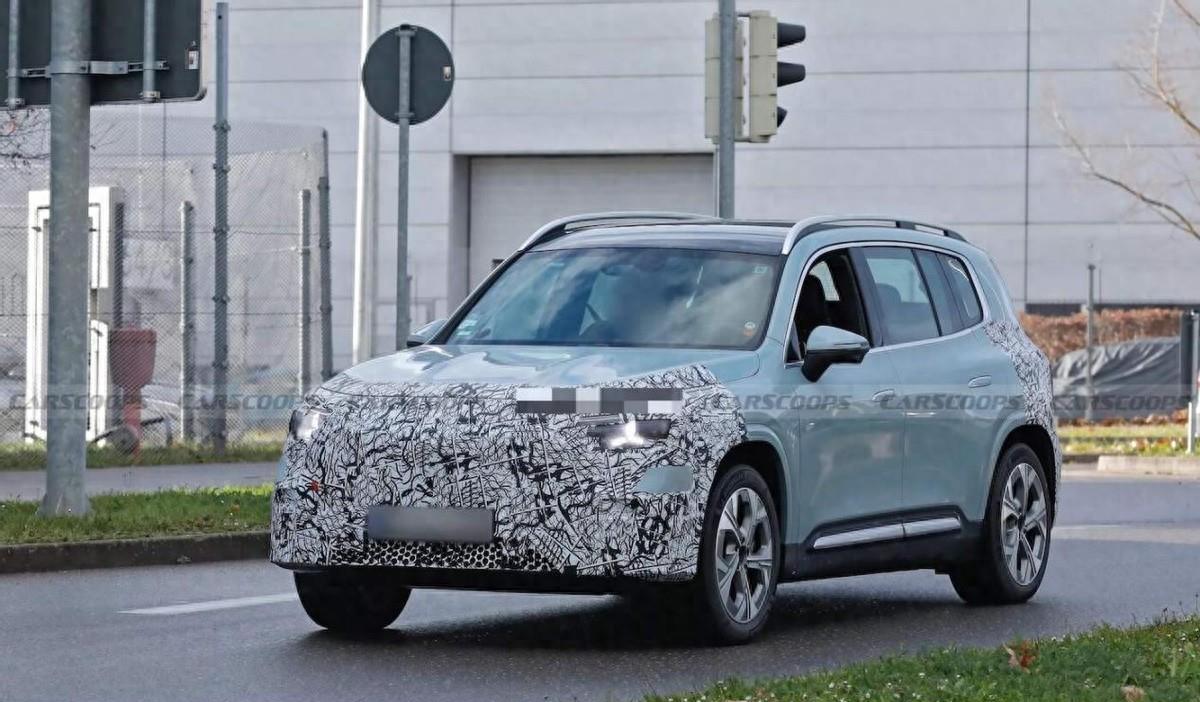 外观方面,奔驰GLB级还没有完全公布外观设计,官方仅仅是公布了在测试中的原型车,但已经有媒体拍摄到了减少了部分伪装的伪装测试车。可以看到车辆前大灯已经嵌入了与品牌标识相同的日行灯,上层的光带、同区域的远近光灯,这些处置都比分体式设计要显得更耐看一些。能明确的是,这一版本已经没有了超大号的进气,格栅将会被封闭的装饰结构所取代,预计会与奔驰GLC EV类似,而进气冷却的任务会被交付给前保险杠来完成,视觉上感觉比现款车型要略低了一些,看上去会更有跨界味道。