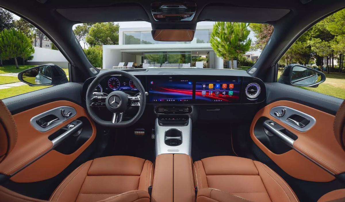 内饰方面,奔驰已经提前公布了完整设计。奔驰GLB级的中控台,包括车门上的控制系统与装饰设计,几乎就是奔驰CLA级的翻版。车辆的中控台上通过10.25英寸全液晶仪表盘与双14.0英寸液晶屏配对,组成了MBUX Supersreen,而它们搭载的第四代MBUX信息娱乐系统也将在8295芯片支持下,融合AI大模型、支持连续对话交互以及丰富生态应用功能拓展。同时,除了两种样式的三辐式方向盘外,在副仪表台、扶手箱以及门板位置,车辆也采用了金属+软包的混搭材料装饰,依靠着工艺优势,奔驰的效果确实比大部分品牌的类似设计显得更协调一些。此外,集成在车门把手一侧的座椅电动按钮也算是一处比较经典的奔驰设计,操作调节比起座椅下的按钮是要方便不少。