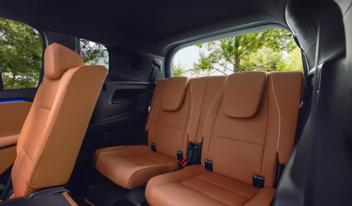 要是看过新一代奔驰CLA级或奔驰CLA EV的朋友,可能会觉得这样的座舱没什么新鲜感了,那我来说一些不同的。奔驰GLB级依旧会提供三排座椅布局,而且还是坚持了2+3+2的七座布局形式,这会让它成为不少二胎家庭、多代家庭的实用选择。但这种布局也意味着用户还是需要通过二排前后滑移+比例放倒调节来出入第三排,便捷度上可能不会像大六座或是2+2+3布局的七座车型那么高。